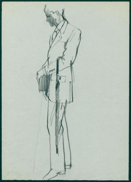 - NOTIZIE STORICO CRITICHE Nel 1955 Giancarlo Iliprandi entra a far parte dell'Ufficio pubblicità de la Rinascente, diretto dall'architetto Carlo Pagani. L'Ufficio pubblicità de la Rinascente è stato un punto di riferimento professionale per grafici, designer, fotografi e addetti alla comunicazione sia italiani che internazionali. Insieme a Iliprandi troviamo i nomi di Max Huber, Pino Tovaglia, Albe Steiner, Lora Lamm, Carla Gorgerino e Pegge Hopper. La lunga collaborazione di Iliprandi con La Rinascente lo vede inizialmente coinvolto negli allestimenti di vetrine e reparti sia per le manifestazioni stagionali ricorrenti (Estate, Scuola, Fiera del Bianco, Natale e altre) sia per gli eventi espositivi d'eccezione come le mostre mercato dedicate ai prodotti di una specifica nazione (Spagna, 1955 e Italia, 1956). Il suo intervento oggi più ricordato è quello legato alla moda maschile con la grafica del catalogo "Uomo la Rinascente Moda maschile" dove Iliprandi utilizza il disegno e il racconto fotografico. Un doppio registro che si ritrova anche negli annunci pubblicitari per i quotidiani che dalla sede di Milano venivano declinati anche per le altre sedi nazionali (Cagliari, Catania, Genova, Napoli, Roma). Da un'intervista rilasciata dal grafico milanese a Michele Sacco nel 1982 si evince come la Rinascente sia stata per Iliprandi "una palestra tecnica con infinite possibilità creative" e come nello specifico il settore Uomo Moda maschile sia stato il luogo in cui è riuscito a "esprimere intenzioni grafiche senza incomprensioni o limitazioni". https://archives.rinascente.it