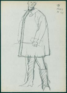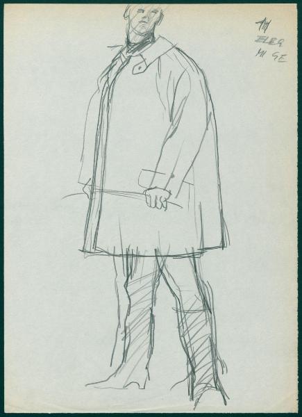 Bozzetto per il periodico dei grandi magazzini la Rinascente "Uomo la Rinascente Moda maschile" dell'ottobre 1961. figura maschile con soprabito