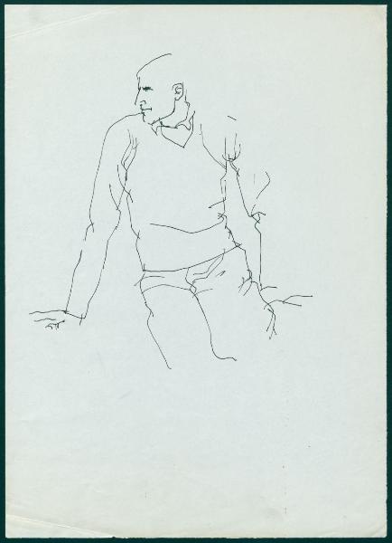 Bozzetto per il periodico dei grandi magazzini la Rinascente "Uomo la Rinascente Moda maschile" dell'ottobre 1961. figura maschile seduta