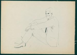 Bozzetto per il periodico dei grandi magazzini la Rinascente "Uomo la Rinascente Moda maschile" dell'ottobre 1961. figura maschile di profilo seduta per terra