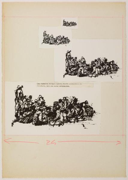 - NOTIZIE STORICO CRITICHE A partire dai disegni ispirati alla strage di Reggio Emilia (luglio 1960) esposti alla Libreria Salto di Milano nel 1961, Iliprandi parte per una riflessione, teorica e grafica, sul rapporto tra grafica e disegno creando una sequenza ragionata d'immagini introdotta da un breve testo sul rapporto tra disegno e grafica. Dalla fine stessa del testo sembrerebbe che tale materiale costituisse una sezione speciale della mostra "che vuole corredare questo discorso e chiarire un certo linguaggio. Sezione inutile per quanti sono esperti di codeste cose, militano in questo campo, ma utile forse per i profani, che sono sempre la maggioranza e che sanno così poco del nostro lavoro di ricerca". Lo stesso testo con una selezione d'immagini è pubblicato sulla rivista "Serigrafia" nel maggio-giugno 1963 con il titolo Incontro fra la grafica e il disegno.