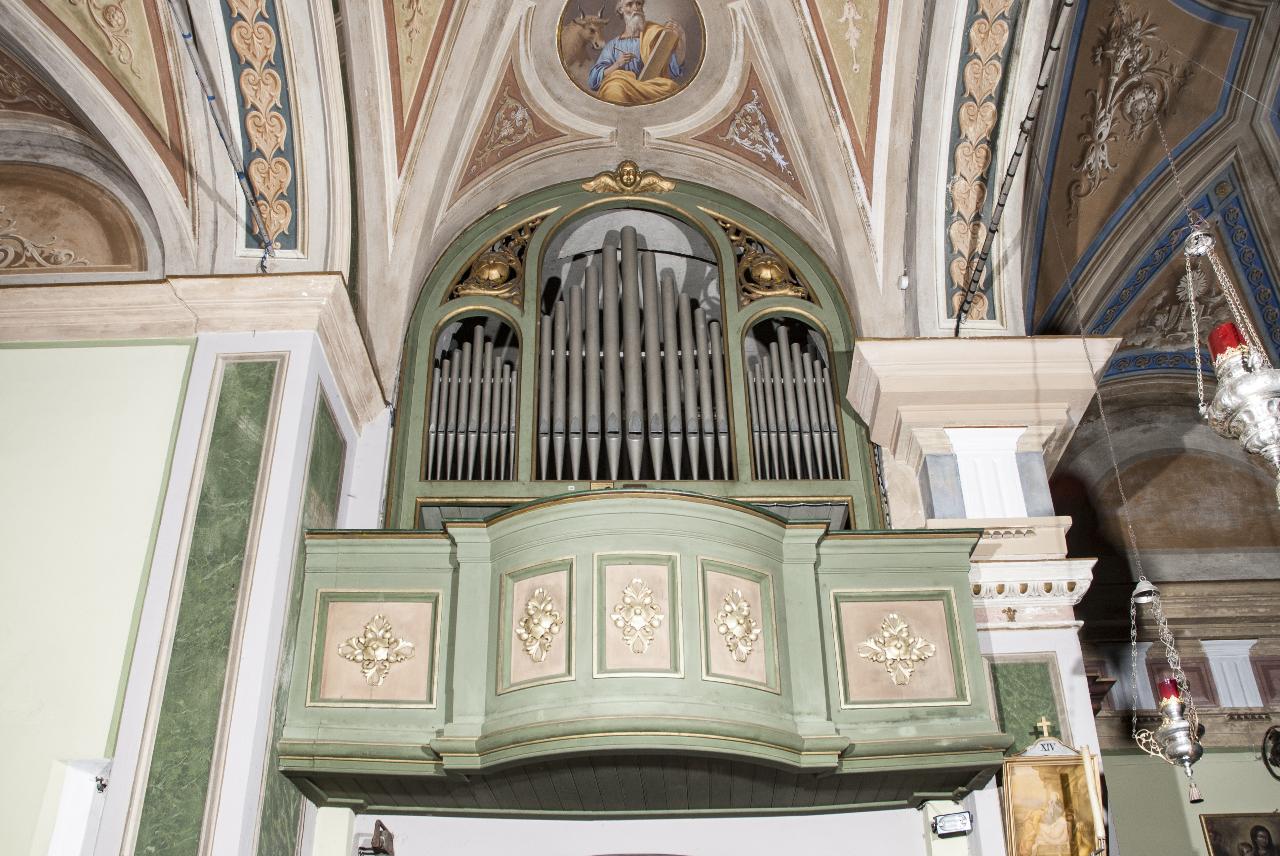 - NOTIZIE STORICO CRITICHE La tribuna da organo della Chiesa di S. Matteo a Arigna di Ponte in Valtellina è collocata sul lato destro del presbiterio e si presenta coordinata alla cassa d'organo. Entrambe vennero costruite in occasione dell' installazione dell'organo, opera di Vincenzo Mascioni del 1914. Realizzata in legno d'abete modanato, sagomato, intagliato e dipinto in grigio, la tribuna ha parapetto suddiviso in riquadri in tinta rosa, abbelliti dalla applicazione di un intaglio centrale ligneo dorato raffigurante una decorazione floreale. Il manufatto, rifinito sia superiormente sia inferiormente con una modanatura semplice e disadorna, è costituito da tre corpi. Il corpo centrale è avanzato e presenta parapetto arcuato.