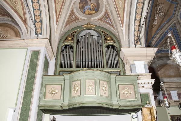 - NOTIZIE STORICO CRITICHE La cassa d'organo della Chiesa di S. Matteo a Arigna di Ponte in Valtellina è coordinata alla relativa tribuna. Entrambe vennero infatti costruite in occasione della installazione dell'organo, opera di Vincenzo Mascioni del 1914. Realizzata in legno d'abete sagomato, scolpito, intagliato e dipinto in grigio con profili dorati, la cassa presenta un andamento superiore arcuato (corrispondente alla struttura architettonica) ed è suddivisa in tre campate, anch'esse coronate ad arco, di cui la centrale di dimensioni maggiori. In ciascuna campata le canne di facciata sono disposte a cuspide. La parte superiore delle campate dispari racchiude un intaglio ligneo dorato di tipo floreale, che richiama gli intagli presenti sulla tribuna. Alla sommità della volta è applicata una testina alata di cherubino in legno dorato.