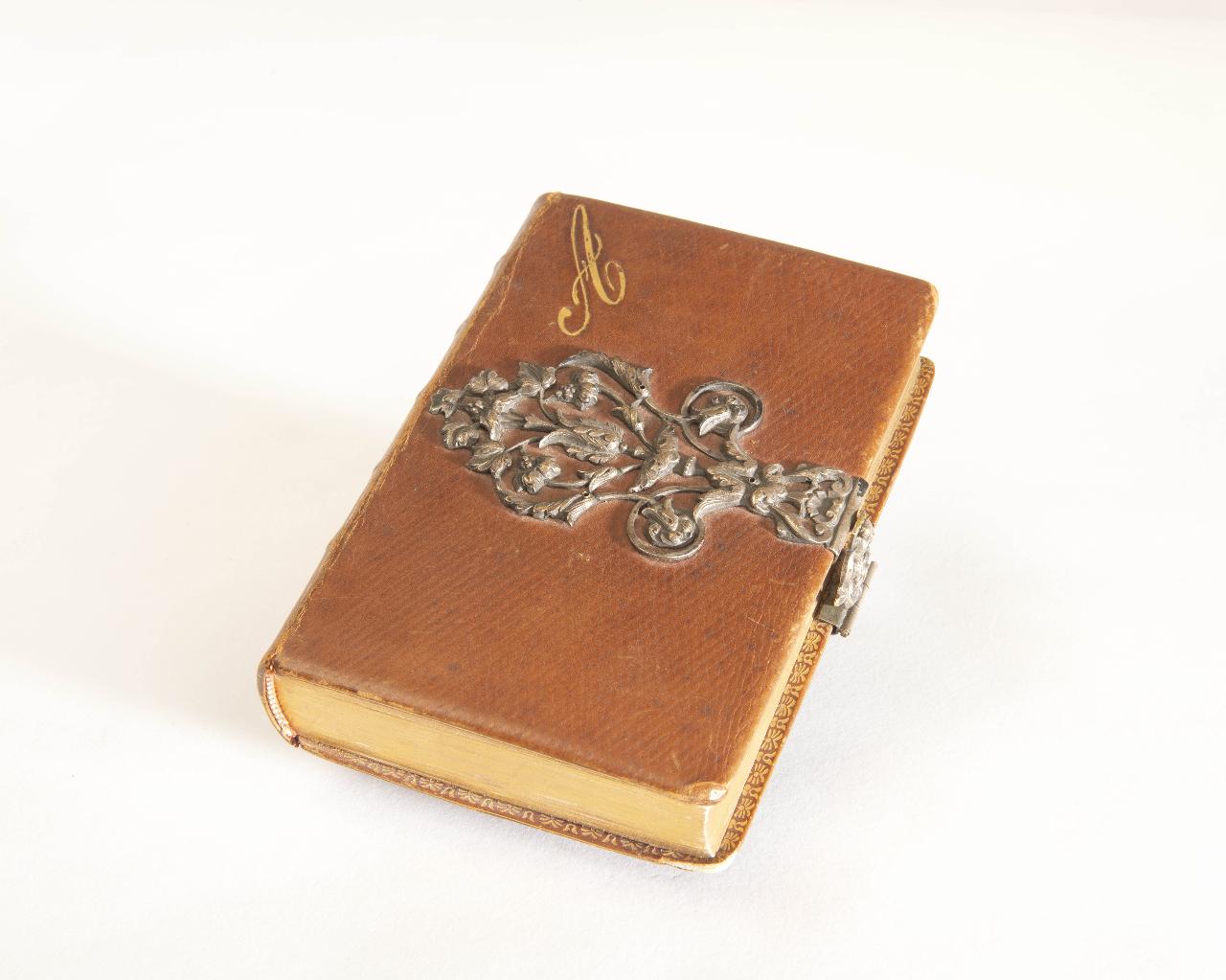 Piccolo libro di contenuto religioso con copertina in pelle marrone e fibbia in metallo cesellato e sbalzato. Il contenuto del testo riguarda "La Sposa Cristiana ossia la donna secondo il cuore di Dio nella famiglia e nel mondo", opera della contessa Laura di Barezia. Il testo è stato tradotto in italiano dal testo originale in francese, edito a Digione da E. Pellion, Librajo editore nel 1864.