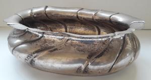 Ciotola in lamina d'argento sbalzata con lavorazione a torchon.