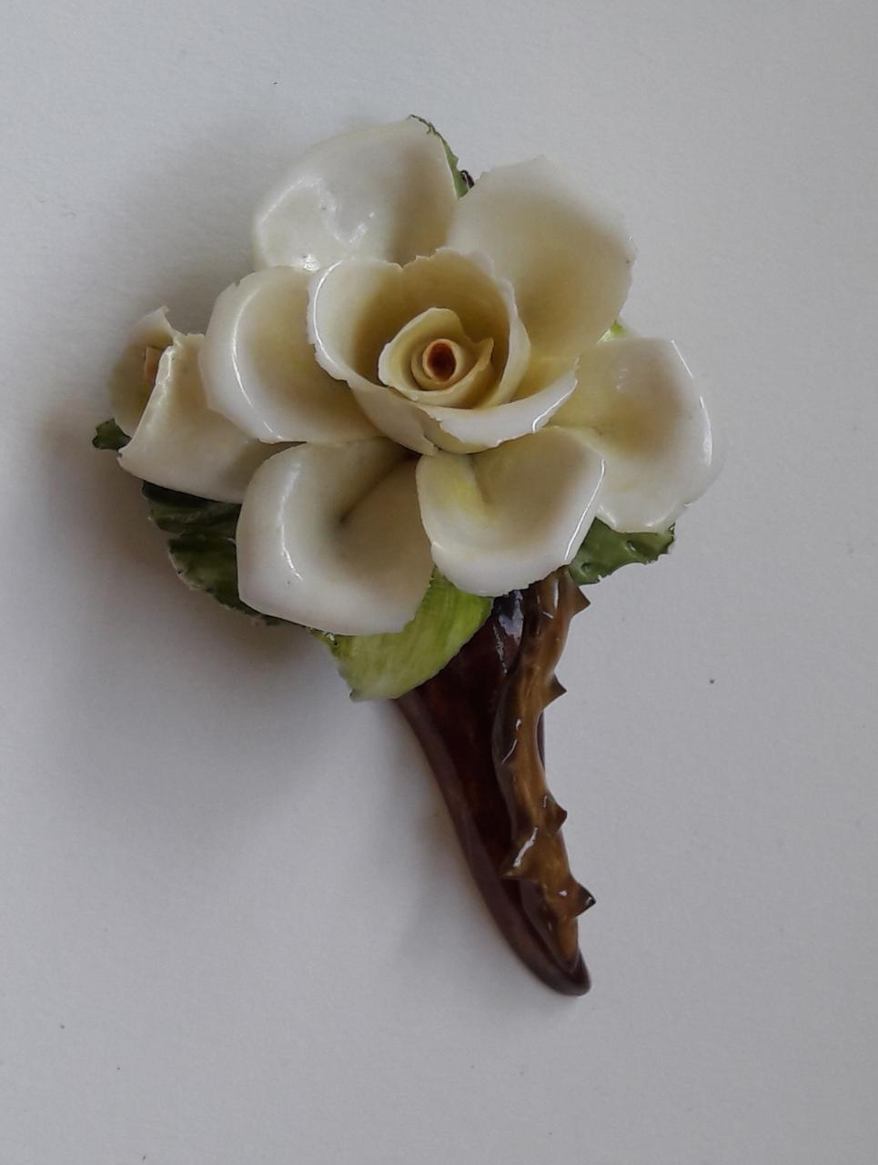 Bomboniera realizzata in porcellana modellata e dipinta a mano, con soggetto floreale.