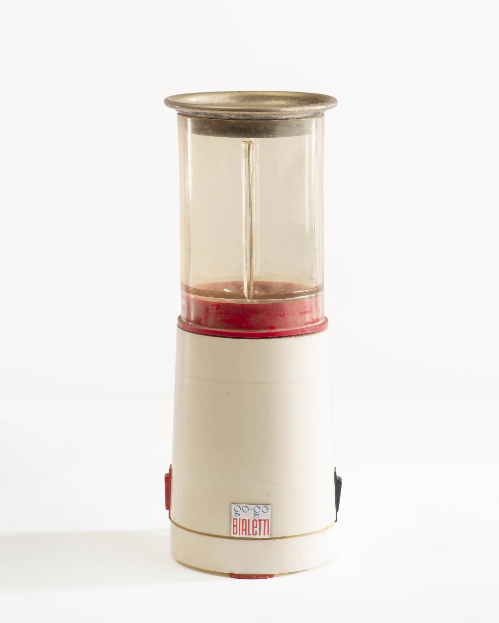 - NOTIZIE STORICO CRITICHE Il frullatore, modello Go.Go prodotto dalla Bialetti, insieme ad altri elettrodomestici presenti nella casa, testimoniano che i Macchi si circondarono gradualmente di tutti i più recenti ritrovati tecnologici.\n\nIl frullatore elettrico è l'evoluzione di quello manuale. L'inventore del frullatore fu Francesco Tomas. Nel 1922 brevettò il mixer drink (blender), ovvero un elettrodomestico adatto a mescolare liquidi e a preparare il latte al malto noto come Horlicks (una bevanda calda diffusa nei paesi anglosassoni). Qualche anno dopo il progetto venne rivisitato sotto il marchio Hamilton Beach Co. e nel 1933 fu prodotto il modello Miracle mixer che comunque presentava alcune problematiche di tenuta e di utilizzo.\nFred Waring nel 1937 propose il modello Waring blendor, frullatore ridisegnato e riprogettato, che rese l'elettrodomestico popolare. Sempre nello stesso anno, WG Barnard propose al mercato un frullatore con un telaio rinforzato di acciaio inox con il recipiente in vetro Pirex come quello proposto da Waring.\nIn Europa Traugott Oertli, imprenditore svizzero, lanciò sul mercato il Turmix Standmixer, rivisitando il progetto di Waring. Egli propose anche il Turmix Juicer indicato per ottenere spremute di frutta e/o verdura, disponibile anche come accessorio separato nel frullatore Turmix; questo suscitò notevole interesse per il consumo del succo di frutta e verdura.\n\nIl frullatore è composto da un gruppo base contenente il motore che fa azionare il frullatore stesso, e la parte superiore rimovibile dove è possibile inserire gli ingredienti che devono poi essere frullati, triturati, sminuzzati, miscelati, chiuso da un coperchio per impedire la fuoriuscita degli ingredienti.\nIl motore, generalmente dotato di più velocità di rotazione, aziona una lama metallica sagomata "a croce", posta alla base del bicchiere, la cui rapidissima rotazione permette di sminuzzare e mescolare gli ingredienti (ad esempio per produrre sfarinati di frutta a guscio oppure frullati di frutta o verdura), ovvero di emulsionarli, per produrre creme e salse "a freddo" (ad esempio la maionese).\n\nVersioni più recenti di frullatore presentano i componenti invertiti: il recipiente in posizione inferiore e il motore incorporato nel coperchio superiore, che aziona tramite un braccetto verticale la lama, posta comunque al fondo del recipiente. Vengono commercialmente chiamati "tritatutto", ma svolgono le stesse funzioni dell'utensile classico e hanno il vantaggio di essere più facili da svuotare e pulire, e inoltre consentono di cambiare la lama tra varie tipologie in dotazione.\nI frullatori moderni sono realizzati con la maggior parte delle parti in plastica contrariamente ai primi modelli, tranne ovviamente le lame che devono essere di metallo.\n\n