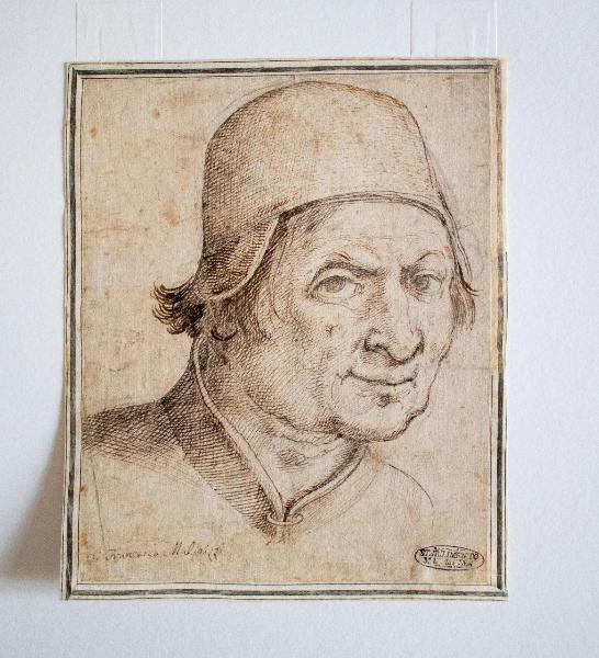 - NOTIZIE STORICO CRITICHE Una nota manoscritta attribuisce l'opera a Francesco Malpizzi. \nFrancesco di Bernardino Malpizzi, secondo le fonti nacque a Cavriana e documentato poi a Mantova. Nel 1552 sposa Anna Ghisi, sorella di Giorgio. Le notizie sul Malpizzi sono molto scarse pertanto non è possibile confermare con certezza la professione di pittore. \nIl ritratto secondo Stefano L' Occaso "mostra una cifra stilistica chiaramente mantovana e confrontabile con la grafica di Giovan Battista Bertani. Molto diverso dagli altri disegni noti di Bernardino, e difficilmente databile dopo gli anni Settanta, il foglio andrà per il momento assegnato a un generico ambito mantovano, in attesa di notizie sulla professione di Francesco Malpizzi, che risulta morto entro il 1583". (L' Occaso 2007, p.103)\n