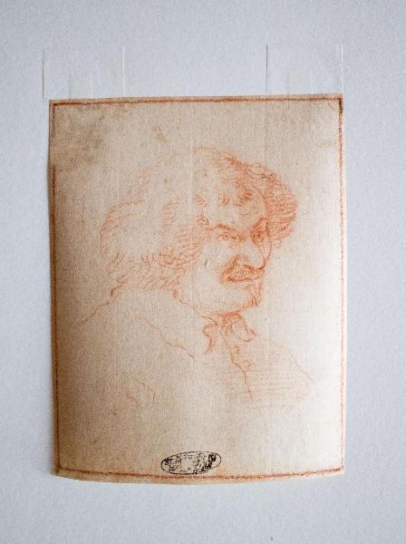 Il disegno realizzato a sanguigna, raffigura un uomo visto di profilo. Il disegno è lasciato in stato di bozza con un chiaroscuro lievemente accennato e maggiore definizione per la rappresentazione dei tratti somatici.