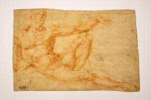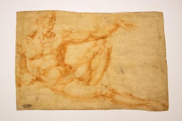 - NOTIZIE STORICO CRITICHE Il disegno di ottima fattura, deriva da "La Creazione di Adamo" affresco realizzato da Michelangelo Buonarroti, datato al 1511 circa e collocato sulla volta della Cappella Sistina.\nLa mano potrebbe potrebbe essere ricondotta ad un autore spagnolo operante tra Cinquecento e Seicento in Italia centrale.