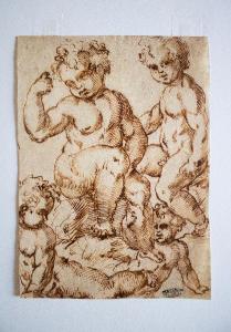 - NOTIZIE STORICO CRITICHE Il foglio pavese, di eccelsa fattura, è da attribuire a Baccio Bandinelli(1488-1560), databile alla prima metà del Cinquecento difatti il disegno può trovare confronto con i numerosi studi di putto attribuiti all'artista o alla sua bottega. In particolare si segnala un foglio facente parte della collezione di disegni della Galleria Estense di Modena (inv. 867) dalla quale emergono chiaramente i modi grafici dell'artista.\n