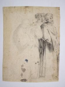 Il foglio ritrae diverse figure maschili, probabilmente santi, eseguite a matita. Il disegno delle tre figure poste sulla destra si trova ad un diverso stato di avanzamento: le figure di destra sono dotate di effetti chiaroscurali che modulano la luce e i volumi, mentre quelle di sinistra si trovano in uno stato di non finito e appaiono solo leggermente impostate nello spazio. Tutte le figure sono avvolte in una tunica che copre gran parte del corpo, l'artista mostra grande attenzione per l' abbigliamento che contribuisce a trasmettere solennità e maestosità alle figure.