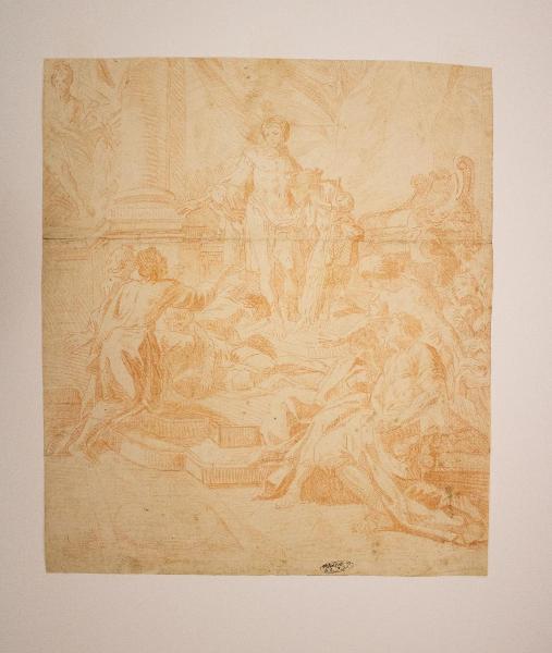 - NOTIZIE STORICO CRITICHE \nIl soggetto richiederebbe ulteriori approfondimenti per permettere di individuare la scena rappresentata.\nIl disegno, di modesta qualità, potrebbe essere una controprova di una copia derivante da un'incisione forse di ambito francese momentaneamente non ancora individuata.