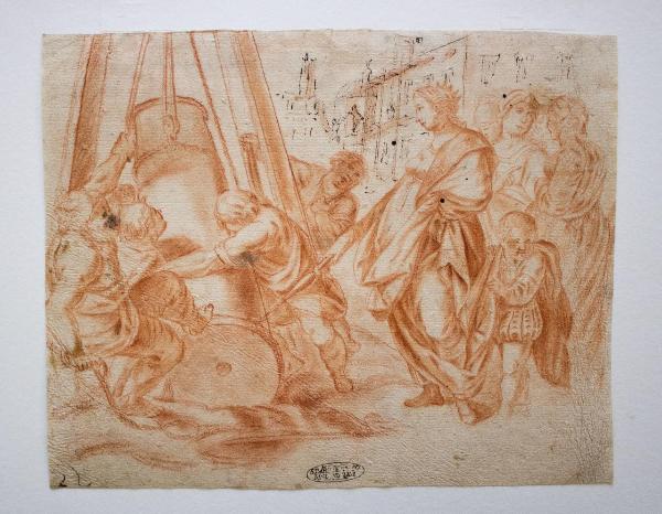 - NOTIZIE STORICO CRITICHE \nDidone, una volta fuggita da Tiro a causa della morte del padre e dell'uccisione del marito per mano del fratello Pigmalione, si reca sulla costa africana dove fonda la città di Cartagine.\nIl disegno, dalla qualità modesta, è da ritenersi presumibilmente una copia.