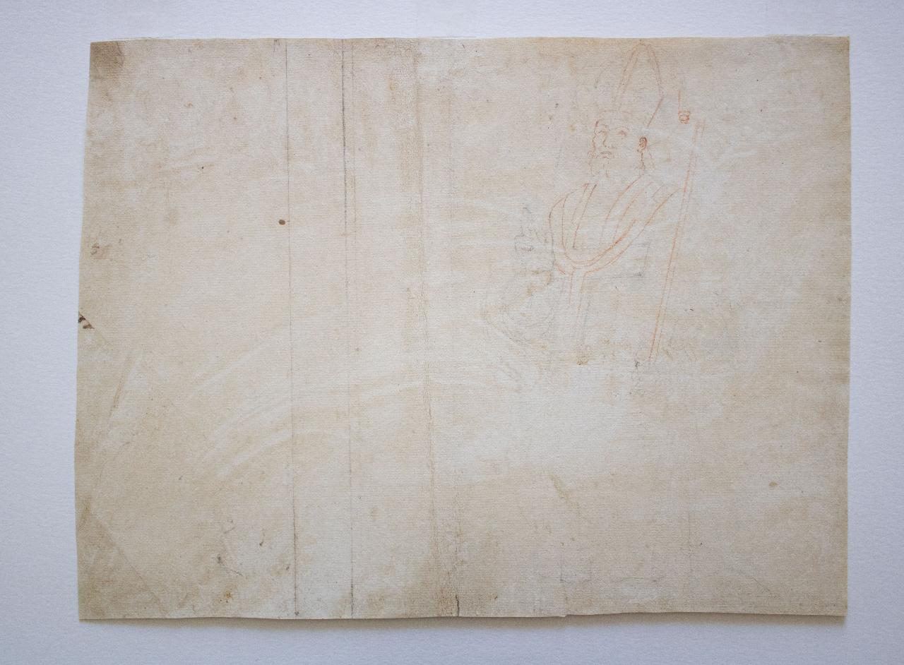 Il foglio è disegnato solo sulla parte destra dove si scorge uno studio di vescovo a mezzo busto con indosso la mitra mentre tiene il pastorale sulla mano sinistra ed alza la mano destra in segno di benedizione; lo sguardo è rivolto verso l'alto. Ad incorniciare il suo capo vi è un'aureola appena visibile.
