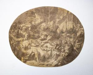 - NOTIZIE STORICO CRITICHE \nIl disegno presenta caratteristiche tecniche ascrivibili ad un autore dalle modeste capacità. L'opera è una copia da un disegno del pittore barocco Domenico Piola (Genova 1627 - ivi 1703), ma la bassa qualità escluderebbe la mano di un pittore proveniente direttamente dalla sua bottega.