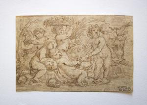 carta/ Inchiostro, acquerello e tracce di matita/ gessetto/ lavis di matita rossa