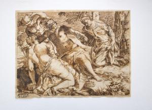 - NOTIZIE STORICO CRITICHE Il disegno è una copia parziale da un'incisione di I. van Meckenem che a sua volta deriva in controparte e con varianti dal celebre bulino di Schongauer (cfr. inv. St. Mal. 80).