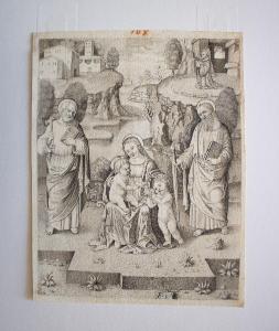 - NOTIZIE STORICO CRITICHE Il disegno è una copia parziale da un'incisione di I. van Meckenem che a sua volta deriva in controparte e con varianti dal celebre bulino di Schongauer (cfr. inv. St. Mal. 80).