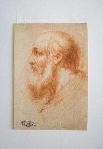 Testa di vecchio di profilo a sinistra. Testa virile di profilo a sinistra