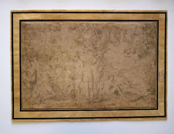 - NOTIZIE STORICO CRITICHE Il disegno è una copia parziale da un'incisione di I. van Meckenem che a sua volta deriva in controparte e con varianti dal celebre bulino di Schongauer (cfr. inv. St. Mal. 80).