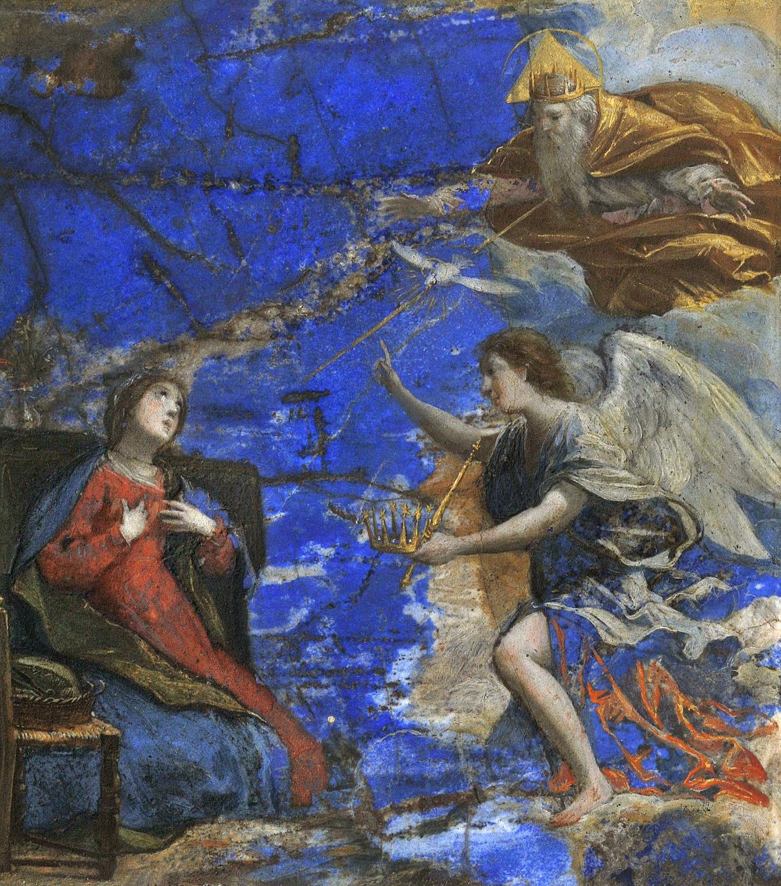 - NOTIZIE STORICO CRITICHE L’artista deve aver appreso l’arte della pittura su pietra durante il suo soggiorno a Firenze tra il 1616 e il 1622-1623, sebbene non siano rimaste alcune opere di questo periodo. L’Annunciazione è stata prodotta durante la sua permanenza a Roma, quando l’artista si era guadagnato la stima di alcuni dignitari e ricevette diverse commissioni di opere pittoriche su supporti preziosi, come il lapislazzulo.\n \nL’Annunciazione parrebbe essere citata due volte negli inventari Barberini. Il 16 giugno 1632 viene pagata “60 a Monsù Stella pittore per la valuta di due quadri in pietra, uno della Nativita di Nro Sign. e l’altro con la Nuntiata” (Thuillier 1960). Il 3 maggio 1634 viene donata da Francesco Barberini all’ambasciatrice di Spagna: “Adi 3 maggio 1634. Donato da Sua Em.za alli Ambasciatrice di Spagna cioè Un quadretto di un p.mo e me.z [un palmo e mezzo] con cornice di Ebano fatta a onde e il fregio di pietro diverse e profilato, con l’Anutiata [l’Annunziata] depinta in lapis lazaro di mano del (Giacomo) Stella…” (G. Chomer e S. Laveissière in cat. exp. Lyon-Toulouse 2006, p. 92).\nStella divenne un vero e proprio maestro di quest’arte, apprezzato in seguito anche in Francia, dove rispondeva ai desideri della nobiltà francese attratta dalla preziosità dei dipinti su pietre (A. Collomb, Jacques Stella et la peinture sur pierre, in cat. exp. Lyon-Toulouse 2006, pp. 28-31).\n \nLa particolarità della scena raffigurante l’Annunciazione sta nell’arcangelo Gabriele che porge la corona alla Vergine, costituendo una rara iconografia che verrà ripresa dall’incisore Johann Friedrich Greuter nel breviario di Urbano VIII (1632, bulino, 16,6 x 10,2 cm; un esemplare a Lione, Biblioteca municipale, cfr. I. de Conihout, Les livres illustrés par Stella: essai de catalogue, in cat. exp. Lyon-Toulouse 2006, pp. 35-39).