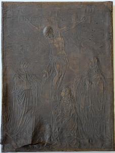 - NOTIZIE STORICO CRITICHE Un analogo manufatto ottocentesco in cuoio, raffigurante lo stesso soggetto, è stato venduto in asta da Dorotheum in data 08.09.2023 (cfr. Lotto n. 37). \nI due esemplari sono derivazioni da un modello di primo Seicento che costituiva parte della decorazione di una campana, fusa nel 1910, nella chiesa di San Nicola a Örebro in Svezia.