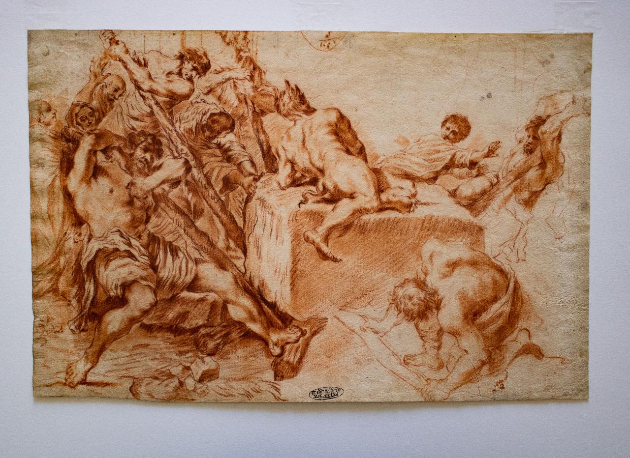 - NOTIZIE STORICO CRITICHE Il disegno è una copia dall'incisione di Giacomo Giovannini (Bologna 1667 – Parma 1717) derivante dal perduto affresco di Ludovico Carracci (Bologna 1555 – ivi 1619) raffigurante "San Benedetto opera il miracolo del Sasso" nel chiostro di S. Michele in Bosco a Bologna.