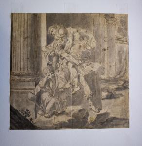- NOTIZIE STORICO CRITICHE Copia dall'incisione di Agostino Carracci con "Enea e Anchise in fuga da Troia in fiamme"