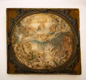Iscritta in un ovale è una nutritissima schiera di personaggi che presenta angeli, anime dannate, santi e semplici anime mortali. Al centro verso l'alto vi è dio Padre con le braccia alzate. Esso è affiancato dalla Vergine.