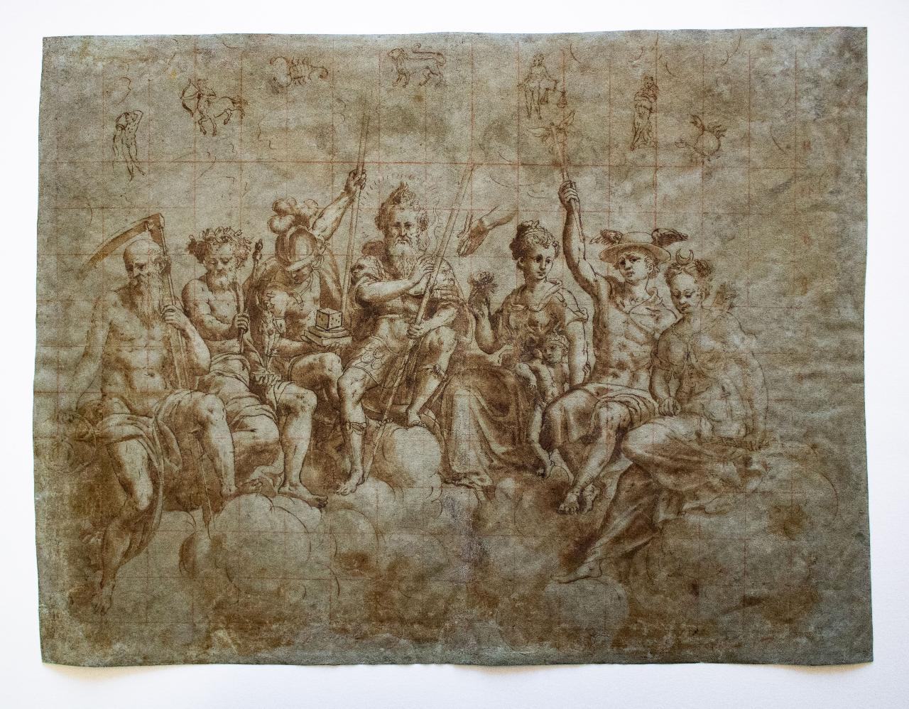 Adagiate su delle nuvole vi sono sette figure seminude ciascuna recante differenti attributi. Sopra di esse compaiono alcuni segni dello zodiaco.