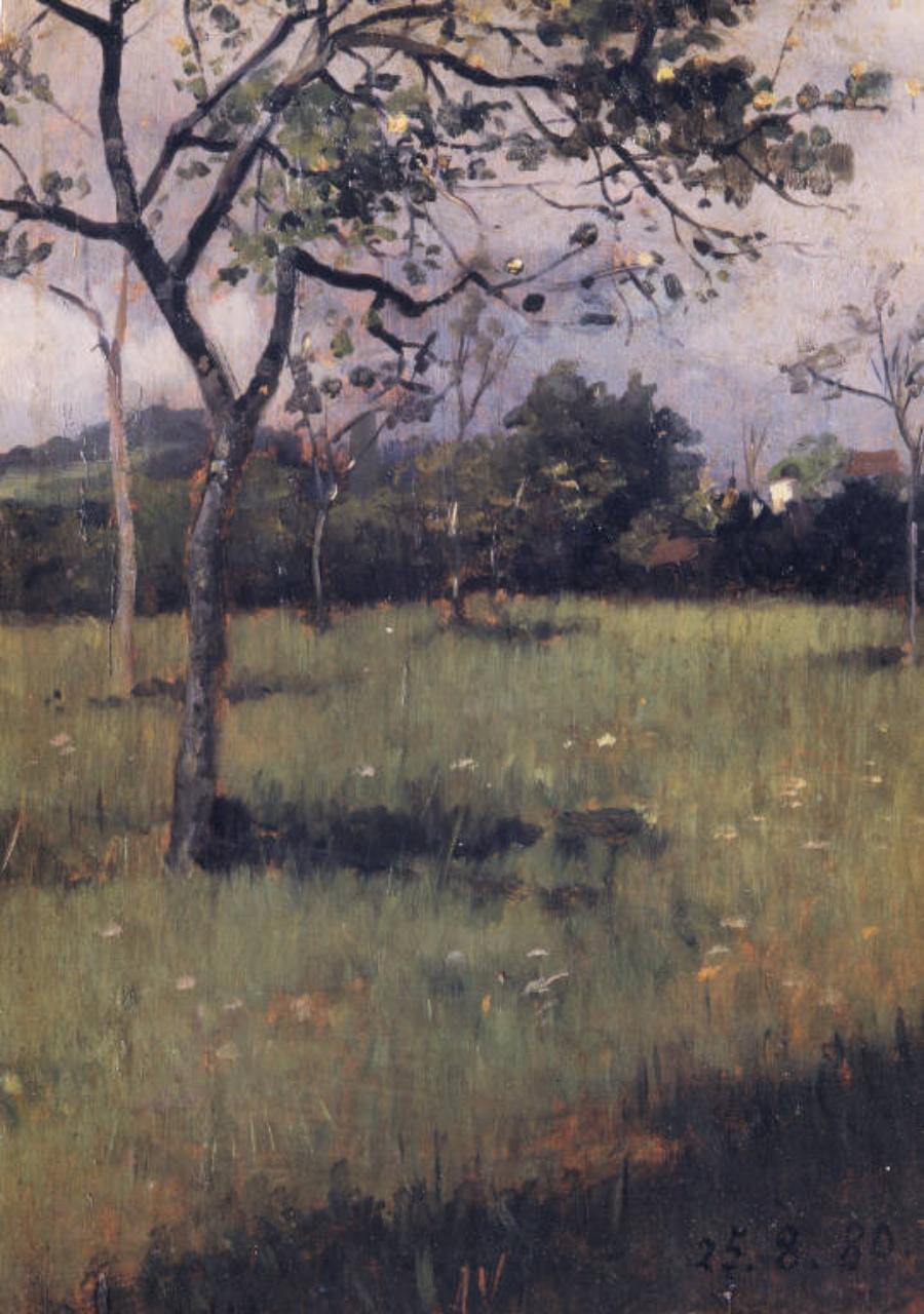 - NOTIZIE STORICO CRITICHE Il titolo "Quiete" fa pensare all'opera "Quies" con la quale l'artista aveva partecipato all'Esposizione Nazionale di Milano del 1881. L'opera è anche la prima a tema paesaggistico della sua produzione, prima improntata alla pittura romantica, sulla scorta dell'esempio offerto da Antonio Fontanesi, dal 1869 titola della cattedra di paesaggio all'Accademia Albertina. A partire dal 1880, Delleani inizia a produrre una serie di opere di piccolo formato siglate con giorno, mese, anno, come annotazioni di un diario privato, in cui la ricerca sul dato naturale è condotta con pennellate rapide e sintetiche.