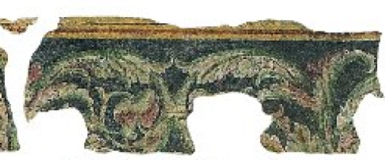 Fregio proveniente dal complesso della Basilica di Sant'Andrea, affresco strappato nel 1972. Il fregio presenta una cornice architettonica con girali policromi su fondo scuro.