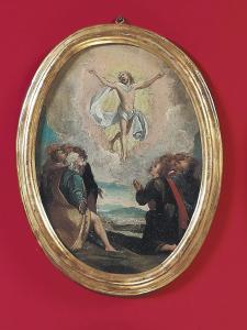 Personaggi: Cristo trionfante, Discepoli. Paesaggio: naturale, prati, alberi, nuvole.