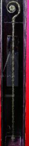 Fregi e incisioni: incisioni che imitano le venature del legno, foglie e baccelli, fiore a corolla aperta. Materiali: argento sbalzato, inciso e cesellato.