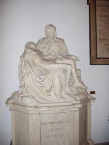 Scultura che copia l'originale di Michelangelo, posizionata su un piedistallo