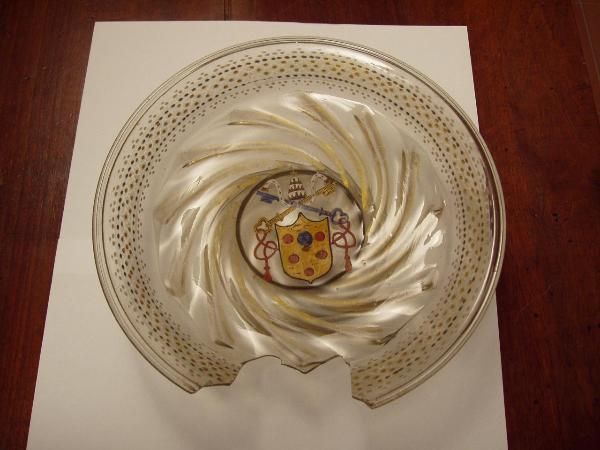 fruttiera con dipinto al centro lo stemma, parzialmente rovinata
