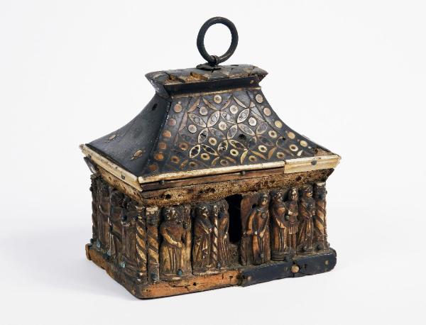 Cofanetto rettangolare a scomparti con placche in osso intagliate