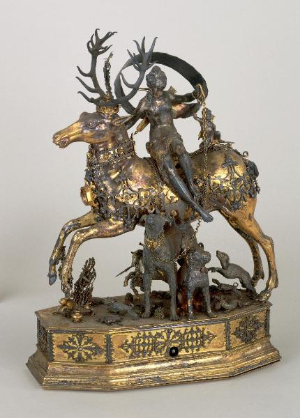 Trinkspiel (gioco potorio) raffigurante Diana cacciatrice a cavallo di un cervo. Diana cacciatrice a cavallo di un cervo
