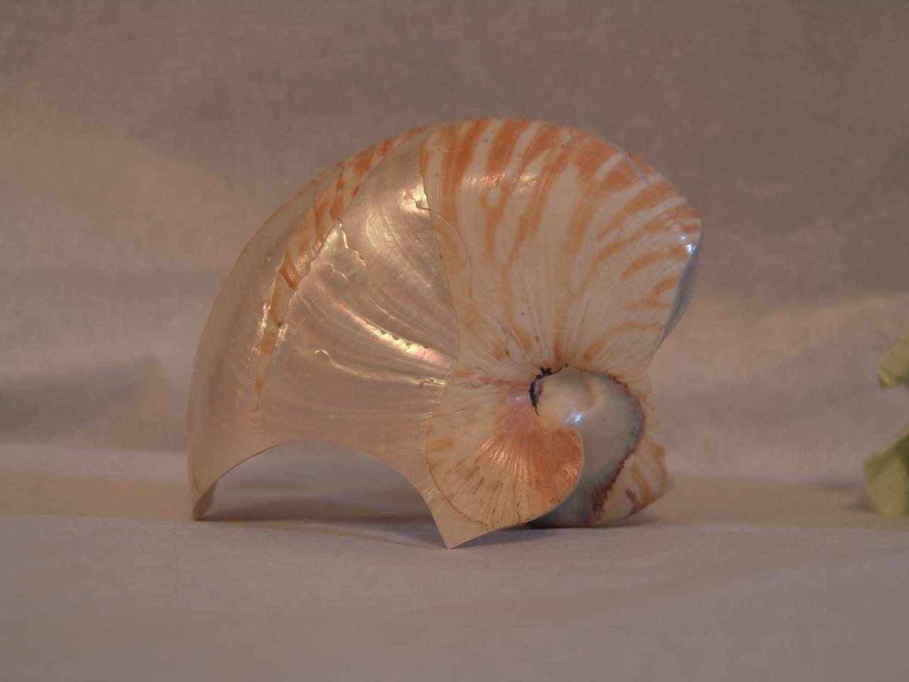 Conchiglia di Nautilus traforata e incisa. conchiglia