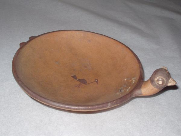 piattino con manico modellato a forma di testa di uccello