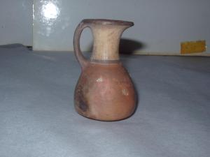 Brocca in miniatura con ansa laterale verticale. motivi decorativi geometrici