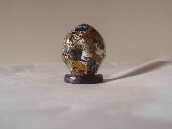sfera con inclusioni di sezioni di canne irregolari millefiori e canne a filigrana
