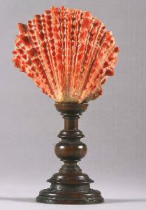 Valva di Spondylus princeps (Broderip, 1833) montata su piedistallo