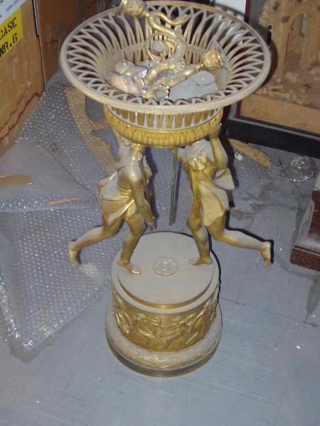 centrotavola formato da un vassoio in cinque pezzi, con due candelabri a sei luci, quattro coppette, sette alzate