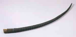 corno, completo di cavicchio osseo tagliato alla base, di una specie di antilope
