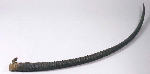 corno, completo di cavicchio osseo tagliato alla base, di una specie di antilope