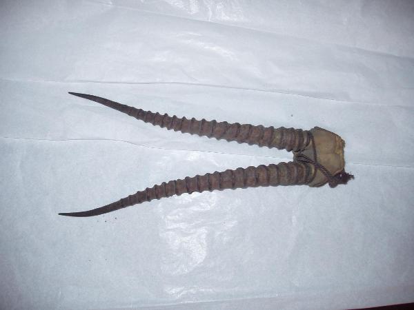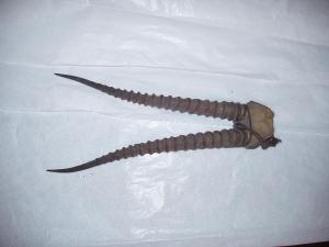 corna unite a una piccola porzione di volta cranica, di un esemplare di gazzella