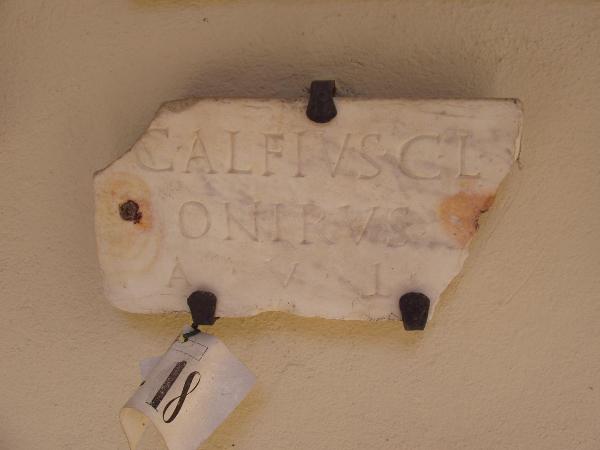 Epigrafe: lastrina funeraria rettangolare sbeccata agli angoli