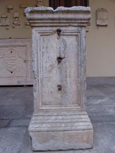 ara decapitata con epigrafe sul fronte